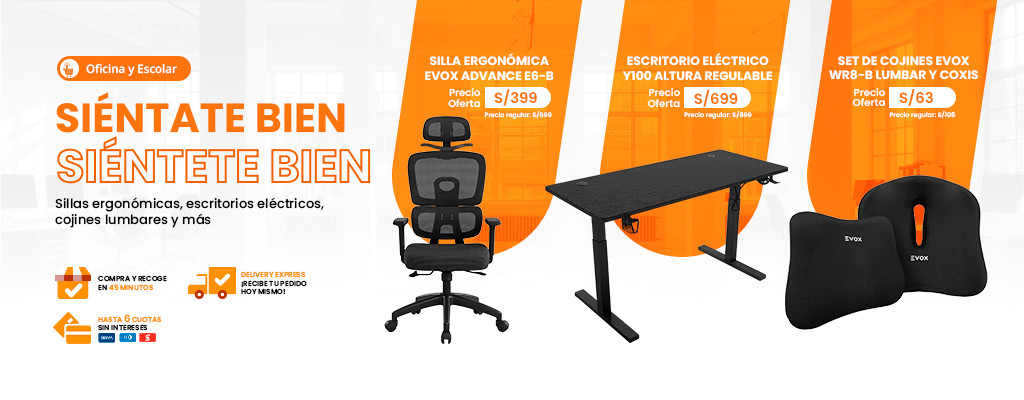 • Silla de Oficina Ergonómica Evox One E3-R (CT258) con Soporte Lumbar y Reposapiés